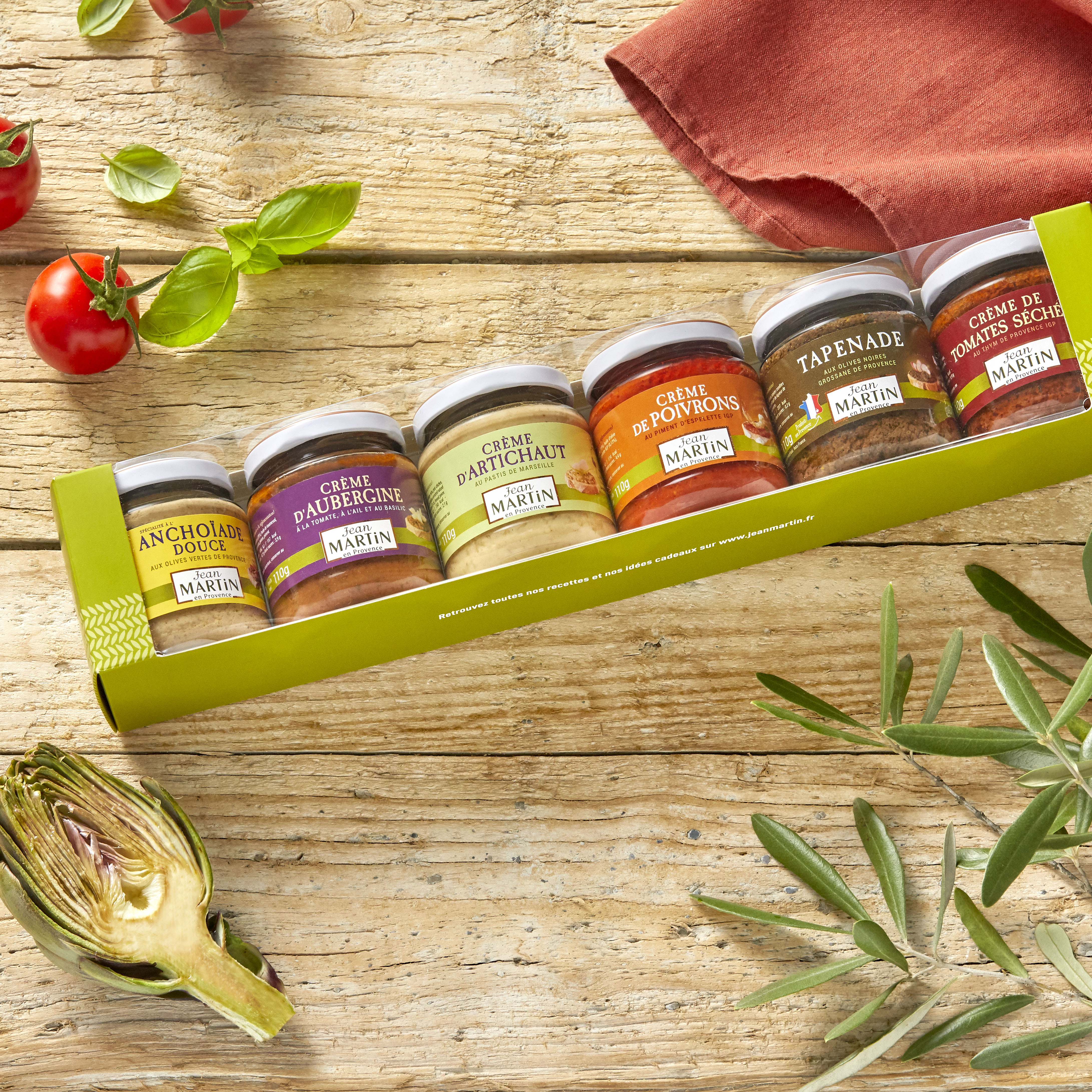 « L'apéritif comme à Maussane-les-Alpilles », un coffret de recettes variées 100% Bio, un coffret « gorgé de soleil » ou encore « Les incontournables de Jean Martin dans un écrin collector », nous avons pensé à tous les goûts, toutes les passions et toutes les exigences afin de vous permettre de choisir le coffret qui vous plaira le mieux.