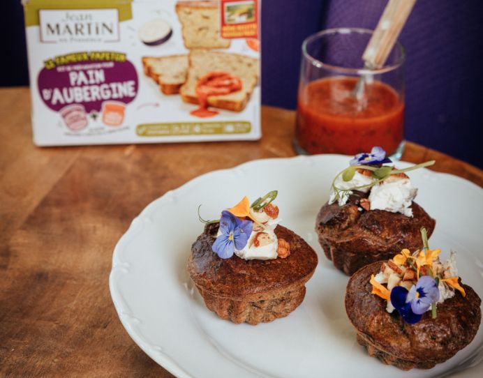 Recette de muffins à l’aubergine, chèvre frais et noisettes