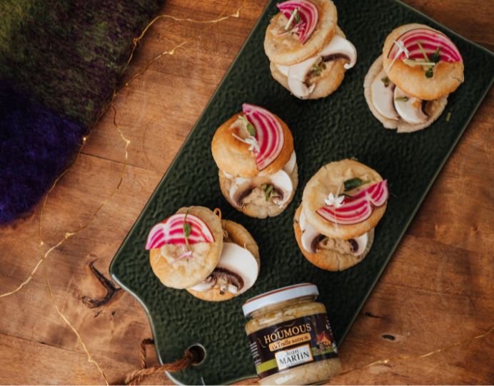 Recette de mini-feuilletés aux champignons et houmous à la truffe