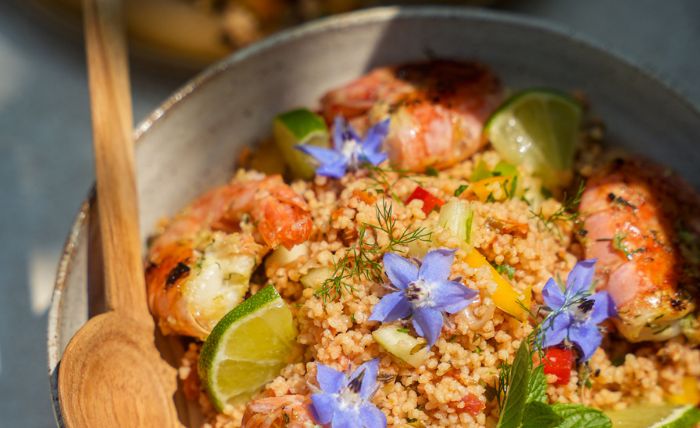 Recette de Taboulé de crevettes à la plancha