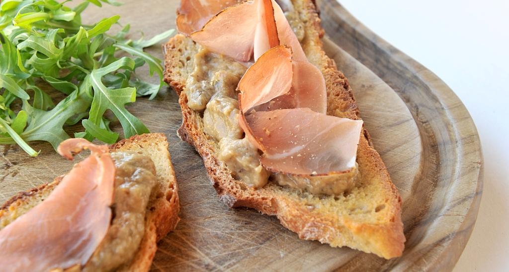 Recette de Tartines de caviar d'aubergine au jambon cru